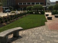 The area within the garden had a brick and paver pathway installed and stone benches, surrounded by new sod.